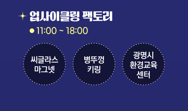 - 체험존 먼저 둘러보기: 업사이클링 체험·마켓 부스 등 인기 부스는 방문 초반이 여유롭습니다.